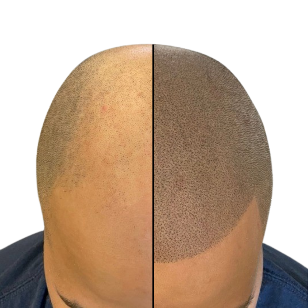 Basically, SMP reduces the contrast between your hair and skin, making it look like you've got a full head of hair, even if you don't.