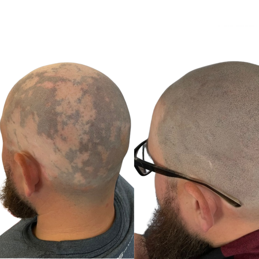 Of course! Some people call it SMP, others Scalp Micropigmentation, Hair Tattoo, Scalp Tattoo, or even Microblading of the scalp. Regardless of what you call it, we look at it as a collaborative effort between the artist and client. We will offer our professional advice on what hairline would look good on you but ultimately the choice is yours!